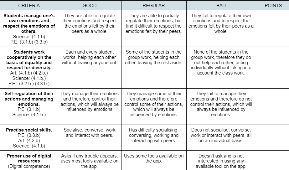 It will be a mixed-evaluation, where students are going to evaluate their final projects (shows) and the teacher is going to evaluate them with direct systematic observation of the process of the learning situation and of the final project (shows) with a rubric shown in the next page.